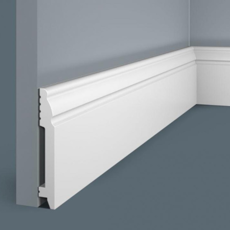 Плинтус Cosca Decor изготовлен из ударопрочного экополимера – это композит с добавлением светостабилизатора. Материал изделия уже огрунтован в своей массе, благодаря чему его можно не окрашивать. Он сохранит белый цвет и не пожелтеет со временем. Красить также легко, с экономией на краске, так как грунтовка уже есть!