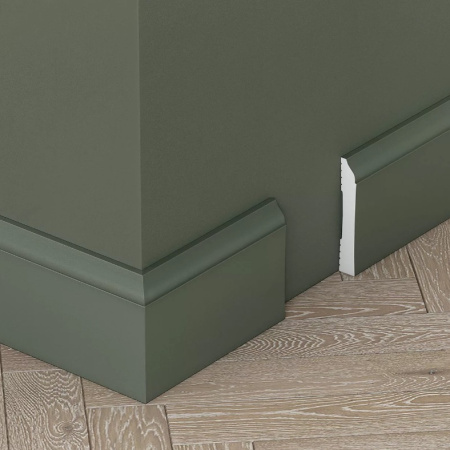 Плинтус Cosca Decor изготовлен из ударопрочного экополимера – это композит с добавлением светостабилизатора. Материал изделия уже огрунтован в своей массе, благодаря чему его можно не окрашивать. Он сохранит белый цвет и не пожелтеет со временем. Красить также легко, с экономией на краске, так как грунтовка уже есть!