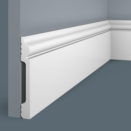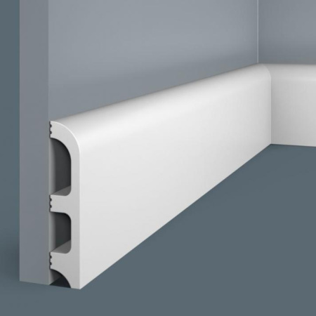 Плинтус Cosca Decor изготовлен из ударопрочного экополимера – это композит с добавлением светостабилизатора. Материал изделия уже огрунтован в своей массе, благодаря чему его можно не окрашивать. Он сохранит белый цвет и не пожелтеет со временем. Красить также легко, с экономией на краске, так как грунтовка уже есть!