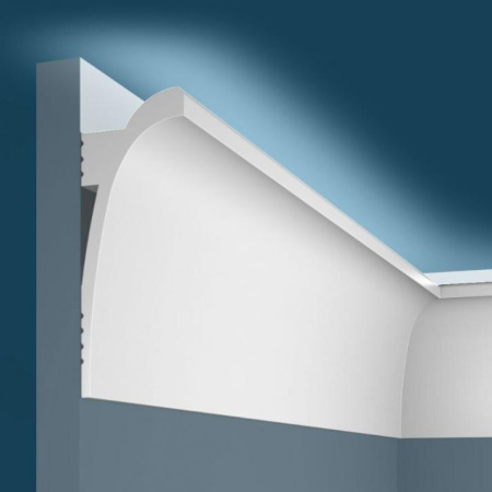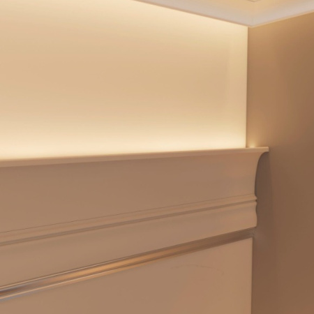 Классический карниз с элегантными изгибами создаст аккуратный переход между стеной и потолком.