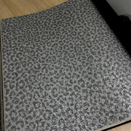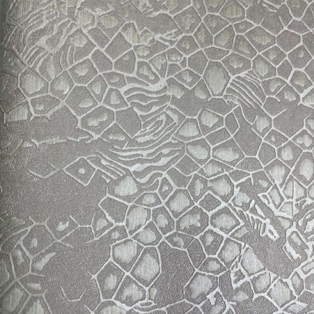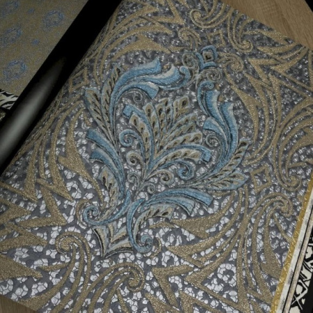 Второй сет - это оригинальные изгибы дамаска, скомбинированные с полотнами, имитирующими шкуры животных, и небрежной эстетикой имитации штукатурки. Однотонные полотна с объемными кракелюрами позволят разнообразить дизайн и визуально сегментировать пространство.
