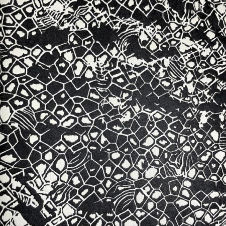 На этот раз рисунок, ставший символом, вернулся в метровой ширине, сплетясь воедино с геометрической композицией, словно летящей над основным фоном. Такой эффект стал возможен благодаря уникальной технике, примененной для обтачивания геометрического рисунка.